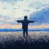 落日衣摆吹散海岸