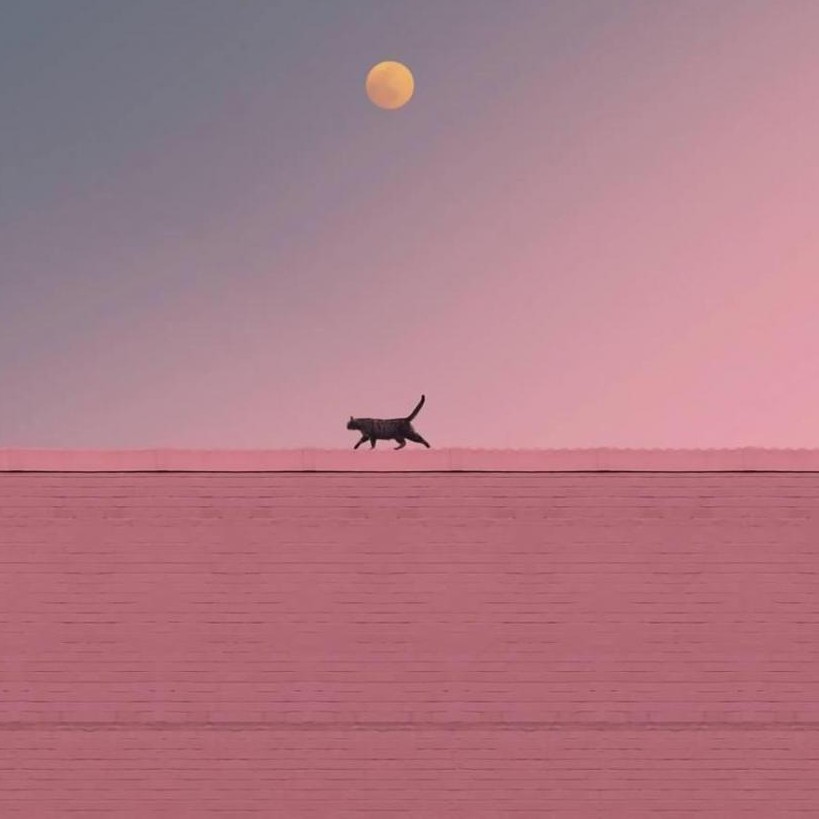 青瓦檐诗意地铺在农舍上,让整个夜晚上变得柔和朦胧。