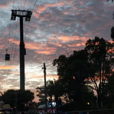 蓝天⾥,堆积如⼭的积⾬云形成动物的形状飘浮着。