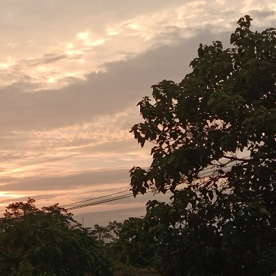 那时正值日出时分,所有较低的山谷都漫着雾气,偶尔有一小片雾气飘散,聚成小朵的云飘走;东方的天际色彩叫明亮,地平线化为一条细细的金线;天际的云从灰蒙化为粉红,雾气也染上一抹金黄。这一瞬,万物犹如屏息般静默了片刻,紧接着朝阳便升起了。这景象美极了。