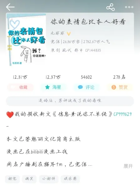 源自网络小说《你的表情包比本人好看》。主角作为艺人,被经纪人严令禁止在录制节目期间接触“无关人员”,然而,这句内心独白却悄然打破了这条冰冷的规则。