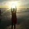 直起腰来,我看见蓝色的大海和帆影。