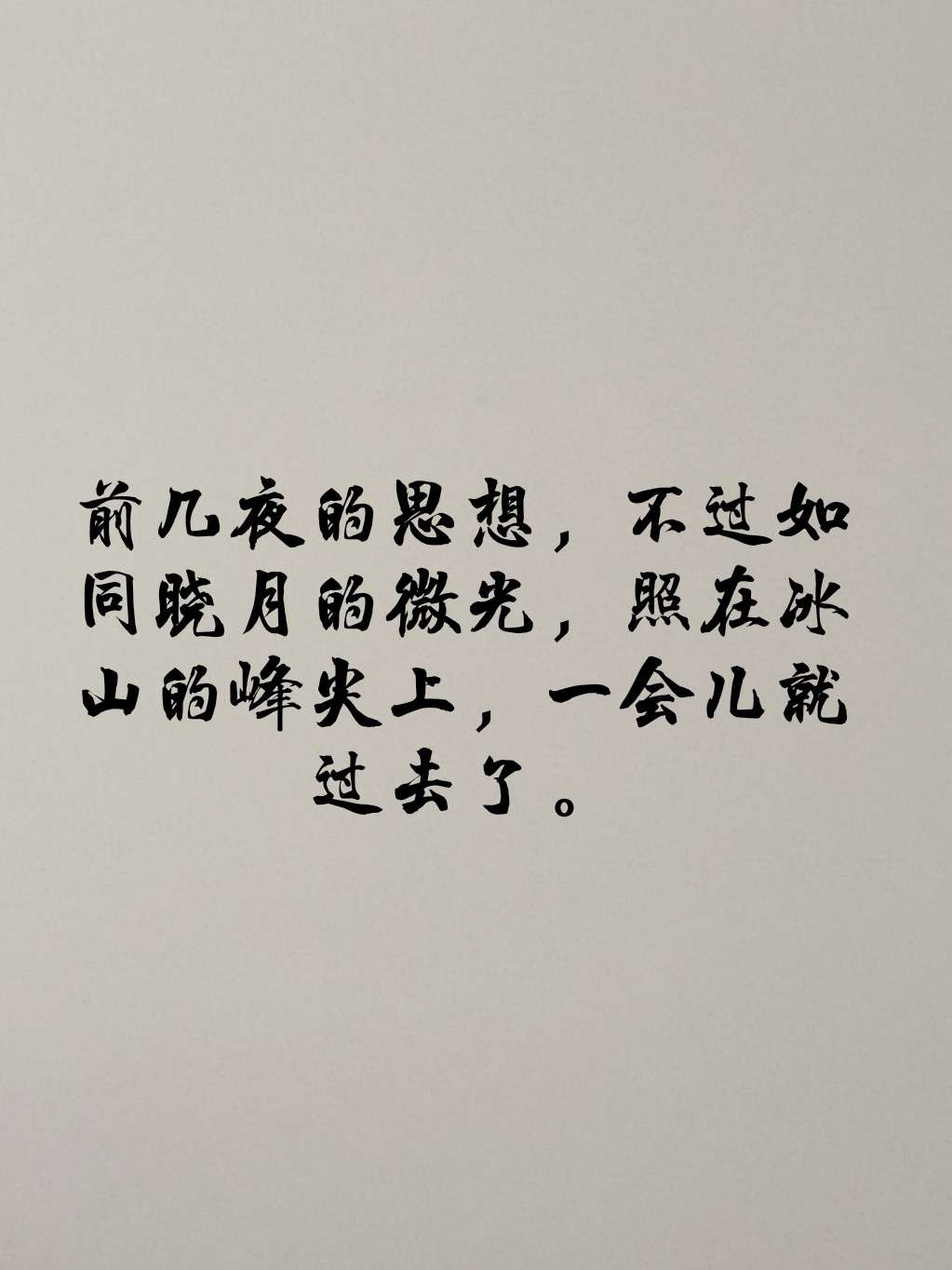 前几夜的思想,不过如同晓月的微光,照在冰山的峰尖上,一会儿就过去 。