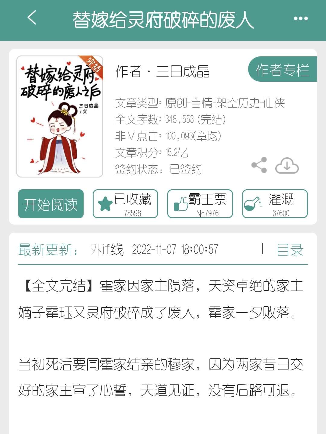 —— 三日成晶替嫁给灵府破碎的废人