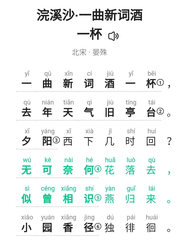 —— 晏殊浣溪沙•一曲新词酒一杯