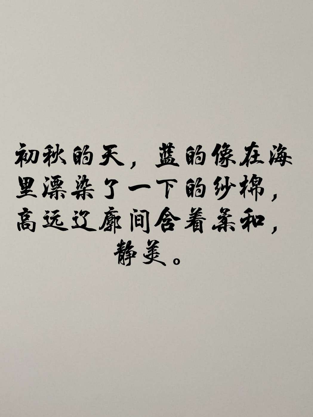 初秋的天,蓝的像在海里漂染了一下的棉纱, 高远辽廓间含着柔和,静美。