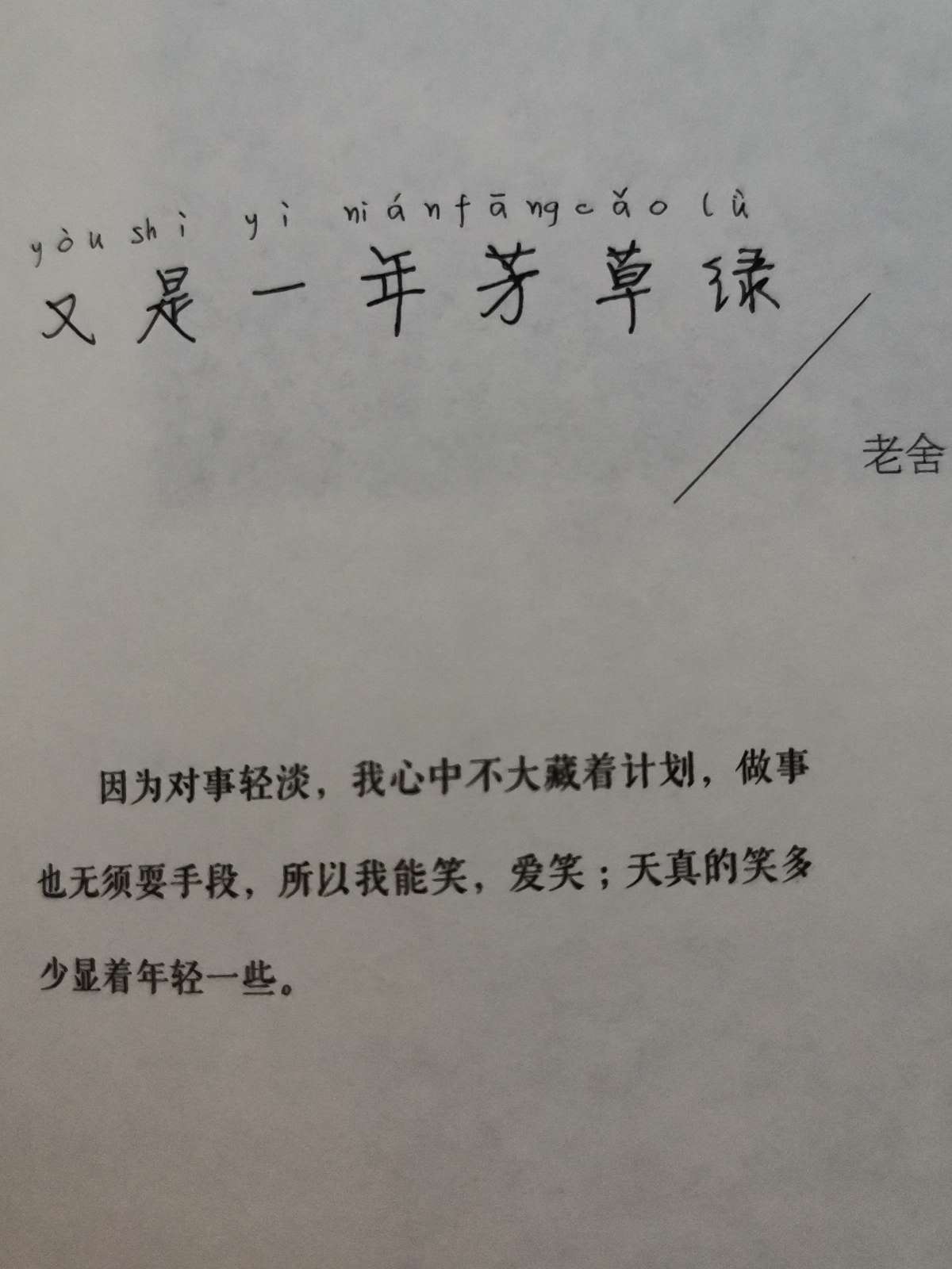 —— 老舍又是一年芳草绿